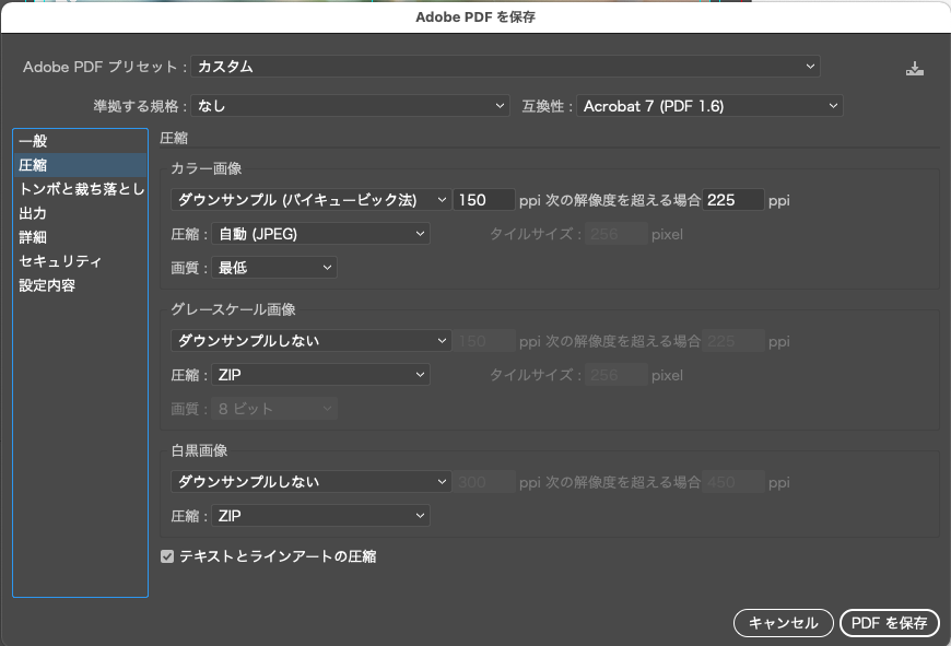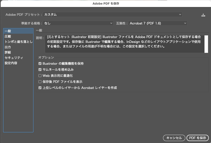 イラストレーターで作成した作品をPDFにする際、そのまま別名保存すると、データが大きくサイトへ、リンクする際読み込みも遅くなります。